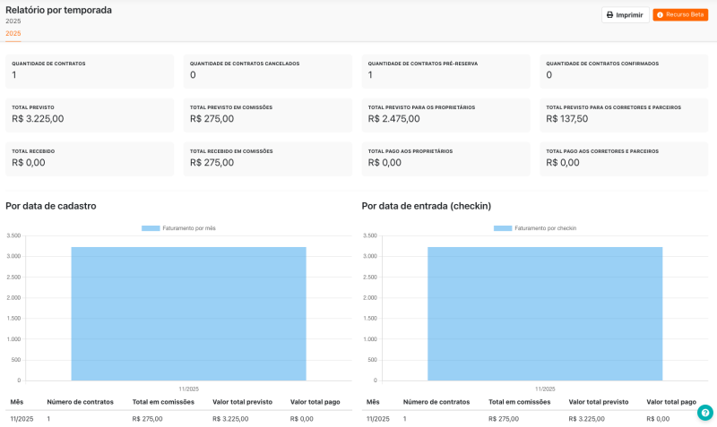 - Novo relatório de locações mensais e de temporada, facilitando a visão de desempenho por período.