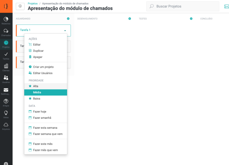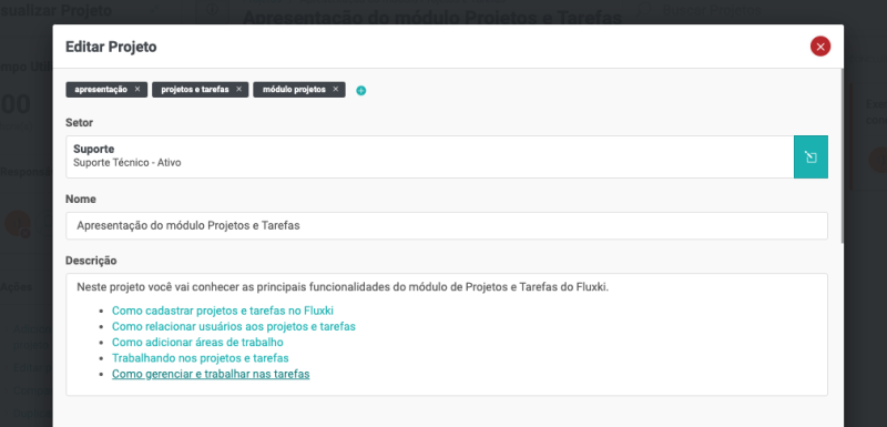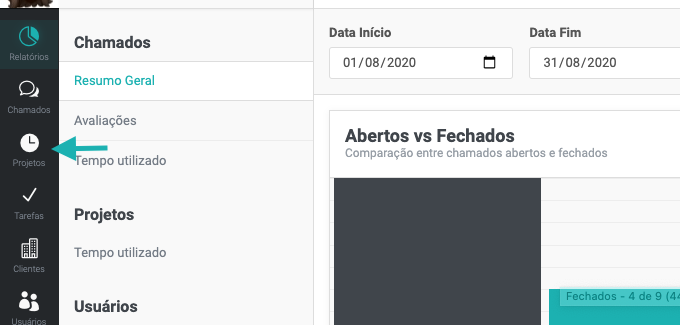 Para saber mais veja o artigo Cadastrando projetos e tarefas a partir de um chamado.