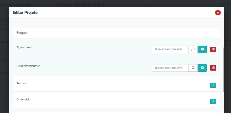 Neste item do cadastro, você poderá personalizar as etapas do projeto.