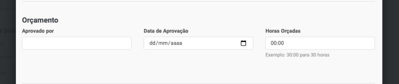 Se o projeto está relacionado a um orçamento, você poderá informar no projeto que aprovou o projeto, a data e as horas orçadas.