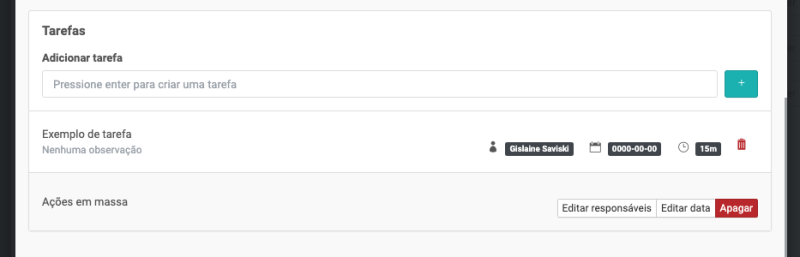 - Ações: editar, duplicar ou apagar a tarefa;
