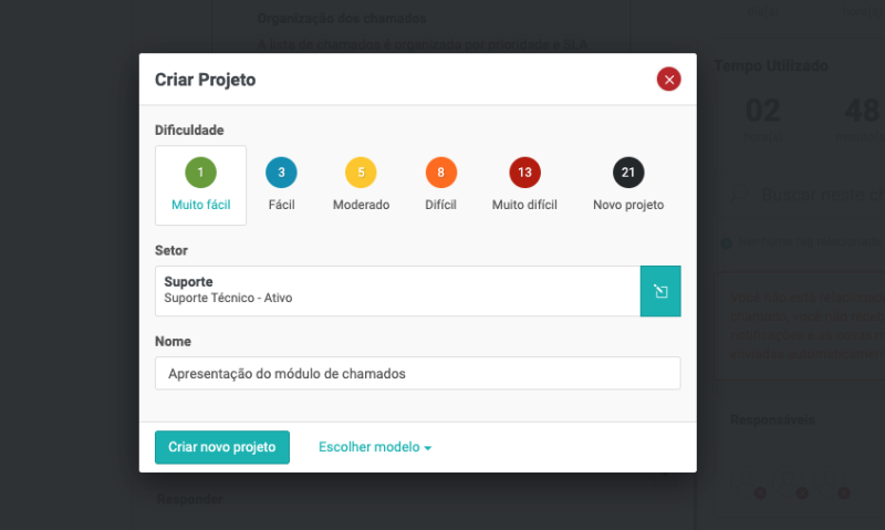 - Dificuldade do projeto: Aqui você vai definir a dificuldade do projeto. A dificuldade é baseada em pontos e você poderá a dificuldade em Ajustes > Dificuldades das tarefas.