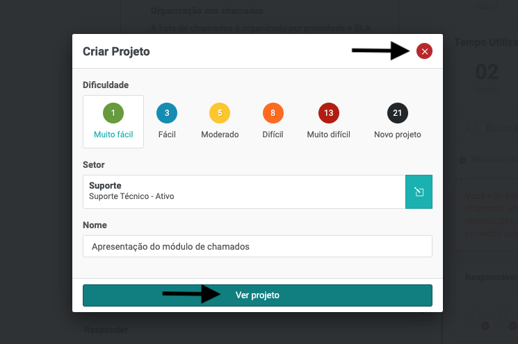 Como adicionar um projeto a partir de um chamado