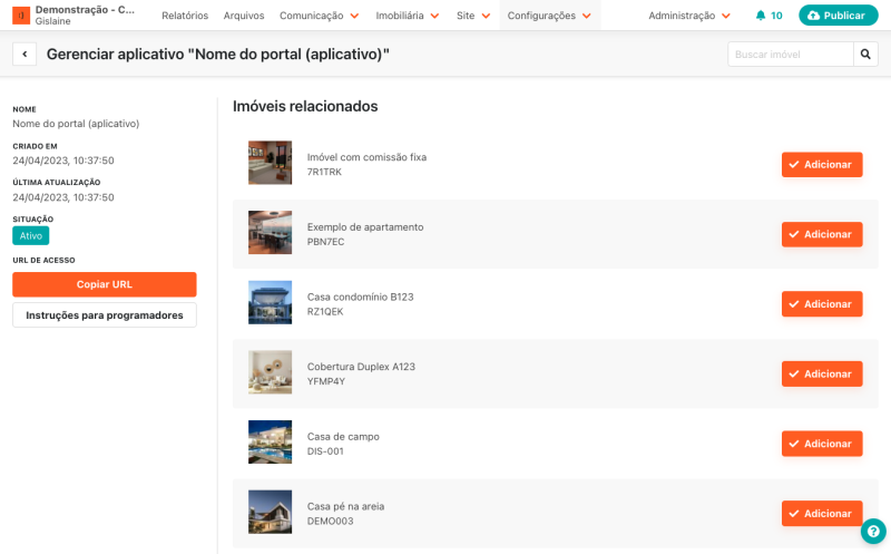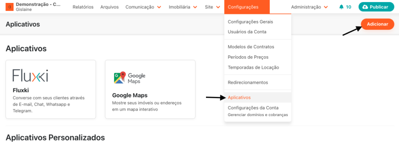 Como adicionar aplicativos externos (portais imobiliários)