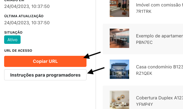 Não envie senha de acesso ao sistema, apenas a URL de Acesso. É por meio da URL que o portal terá acesso a lista de imóveis liberados para integração.Caso fique alguma dúvida, entre em contato com a equipe de suporte.