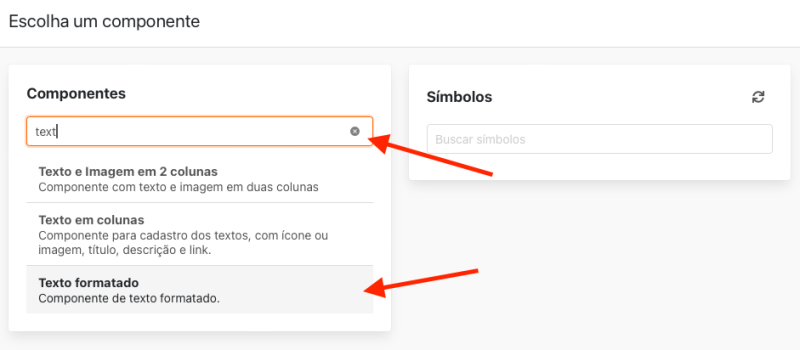 Procure pelo componente Texto formatado, conforme a imagem abaixo.