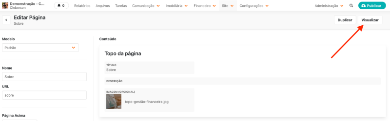 Caso prefira, é possível visualizar as alterações feitas na página, antes de publicar o seu site.
