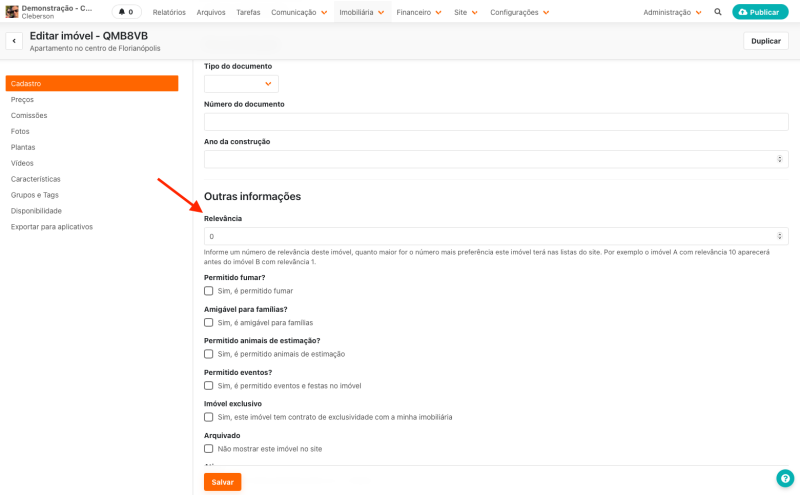 Como alterar a relevância de um imóvel no sistema?