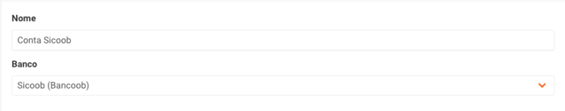 No formulário de cadastro, informe o nome da conta e selecione o banco que a sua empresa utiliza.