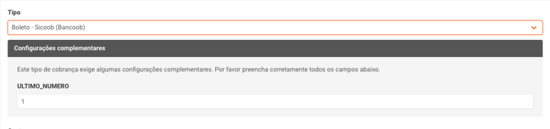 Caso selecione o tipo boleto, informe o último_número. Esse número seja usado para gerar o arquivo de remessa.