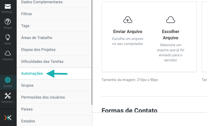 Para configurar as automações, acesse o menu principal Ajustes e acesse o item Automações: