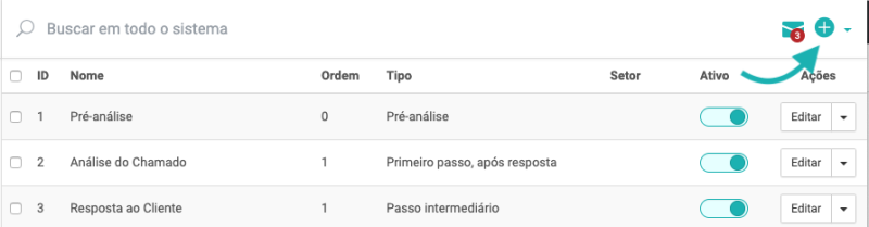 Como configurar etapas dos chamados