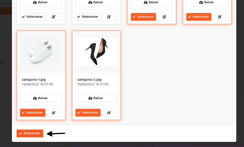 Para usar as fotos da biblioteca, encontre as imagens desejadas selecione as fotos e clique no botão Selecionar.