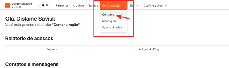 Em seguida, clique no menu "Comunicação > Contatos".