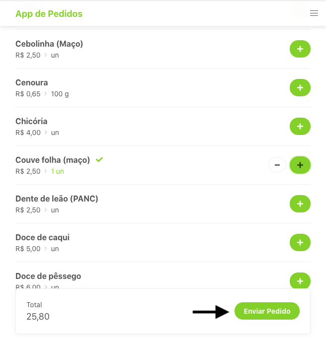 Após adicionar todos os produtos desejados, clique em Enviar pedido:
