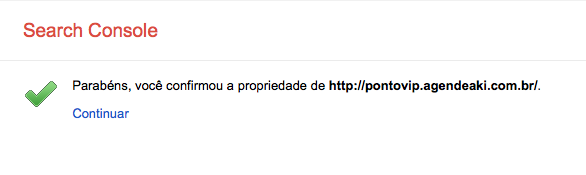 - Em seguida, retorne para a página do Google Search Console e clique no botão Verificar. Se tudo correu bem, será exibida a mensagem abaixo: