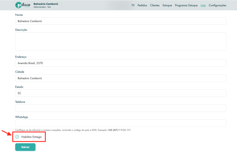 Pronto, agora está habilitado a opção de entrega própria da loja.
