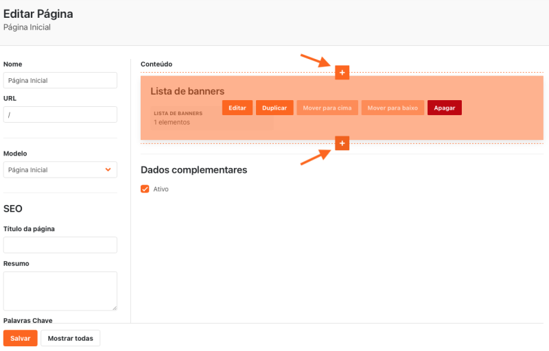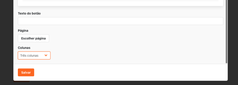 E para finalizar, temos os botões de ações Salvar, para finalizar a edição da página.