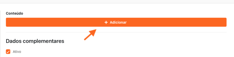 Os componentes serão adicionados no campo de conteúdo, no editor de páginas, e você deverá clicar em + Adicionar, para escolher os componentes da página: