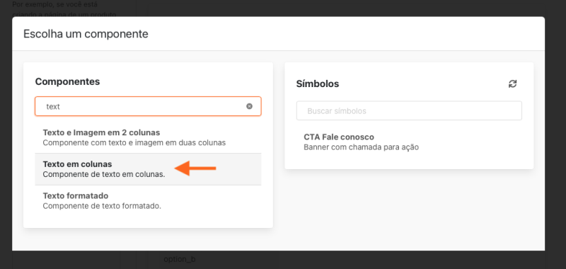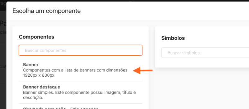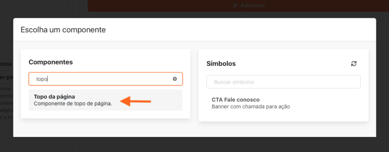 Para adicionar o componente na página, clique sobre o componente desejado: