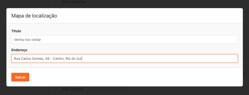 Informe o título e o endereço da sua imobiliária. Esse componente irá adicionar o mapa do Google em seu site.