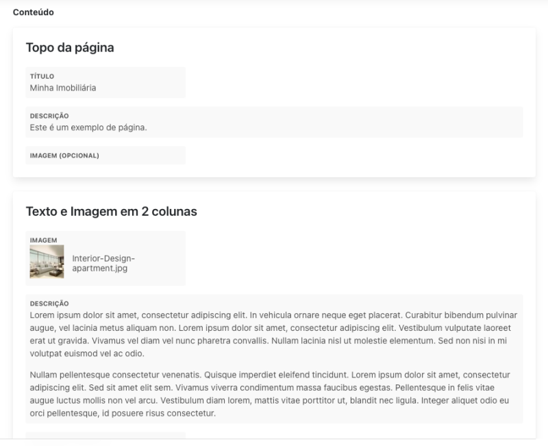 - Detalhes de um imóvel: Utilize este modelo quando adicionar uma página do imóvel;