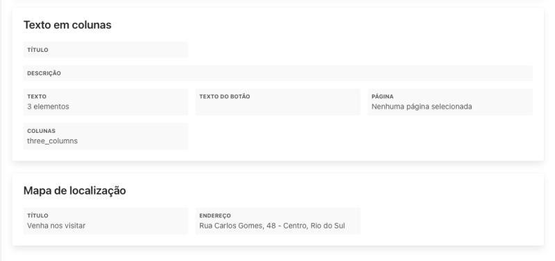 As páginas são compostas por blocos de conteúdo, que chamamos de componentes. Sendo assim, uma página possui um ou mais componentes e cada componente possui suas configurações.