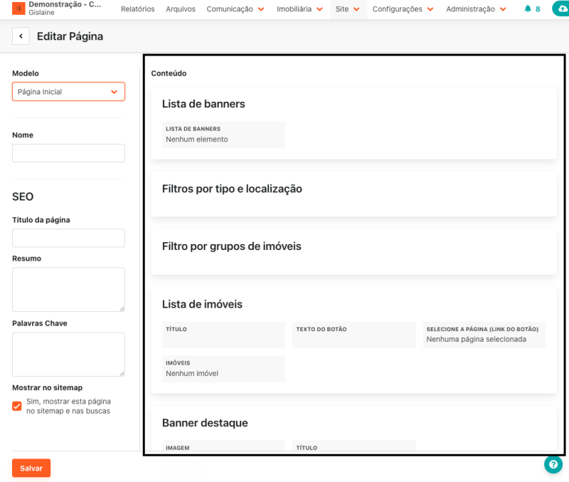 O editor de páginas é um recurso do sistema para imobiliária Cim Imob 3.0.