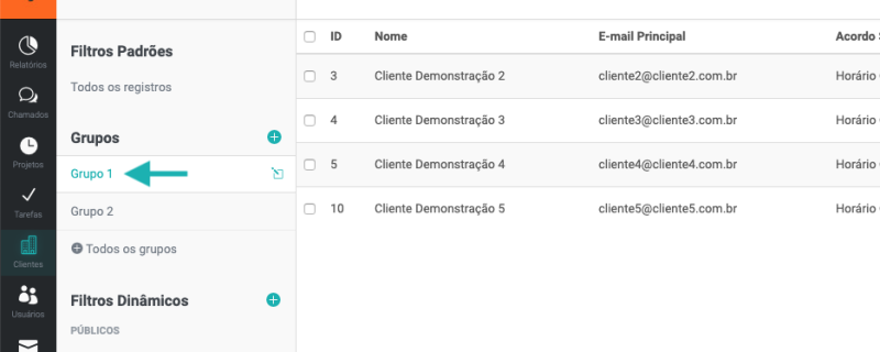 Como visualizar os clientes de um grupo