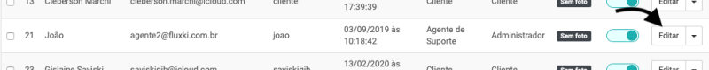 O sistema irá exibir a lista com todos os usuários do sistema, encontre o usuário desejado e clique no botão Editar.