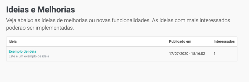 Aqui você poderá visualizar as ideias e melhorias disponibilizadas pela nossa equipe e você poderá avaliar e votar nas melhores ideias.