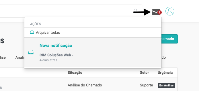 Para acessar, clique no ícone de notificações, conforme a imagem abaixo.
