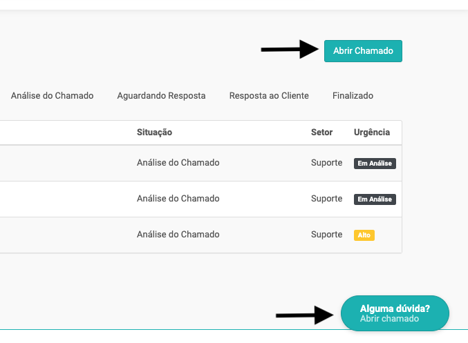 3. Botão para Abrir chamado;