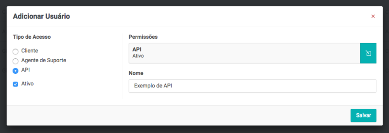 Criar um usuário de acesso (API)