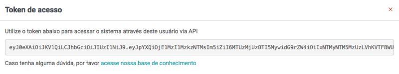 Após salvar, o sistema irá gerar um token de acesso, copie este token, pois você irá utilizá-lo próximos passos.