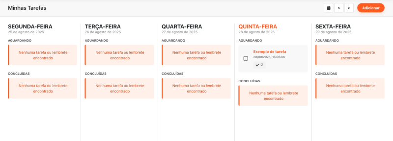 Na tela, será exibida a agenda da semana atual, mostrando as tarefas agendadas em cada dia.