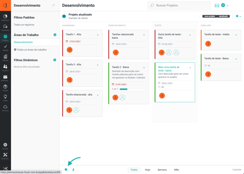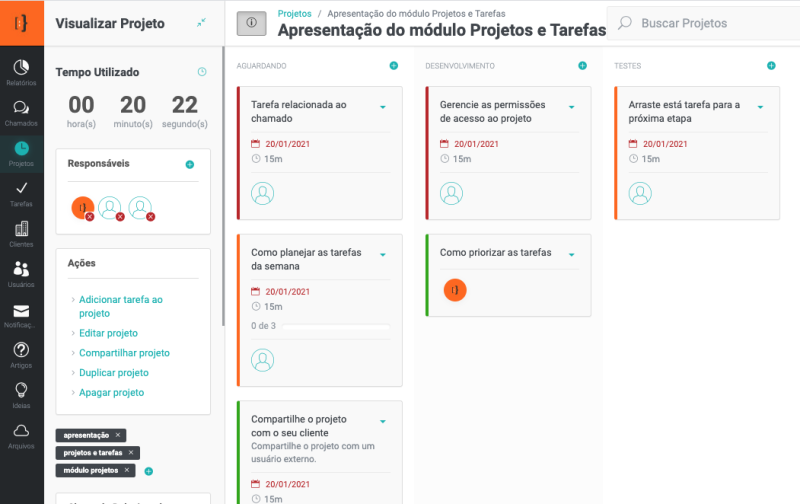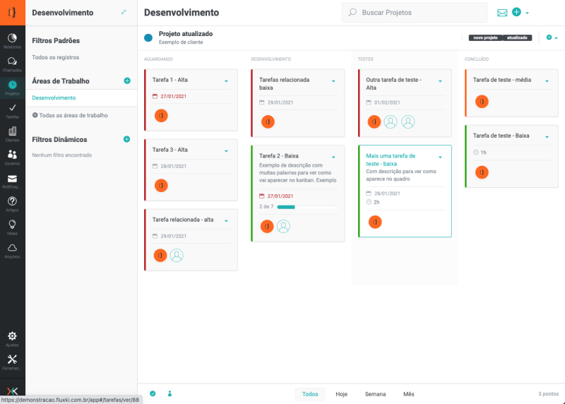 O Fluxki possui o módulo de projetos, ou seja, você poderá cadastrar os projetos da sua empresa / equipe, distribuir as tarefas e acompanhar o andamento dos projetos através do quadro Kanban.