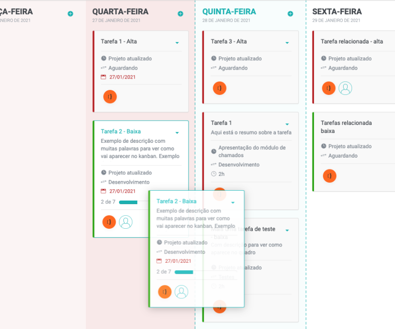 Ou, na área de trabalho, clique e arraste a tarefa para a etapa desejada.