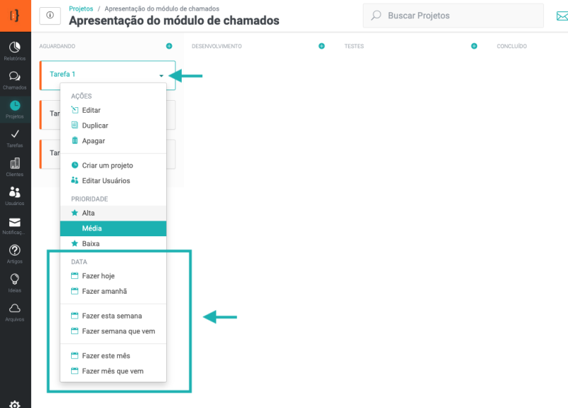 Para saber mais sobre como definiar as datas das tarefas, veja o artigo Como gerenciar e trabalhar nas tarefas.