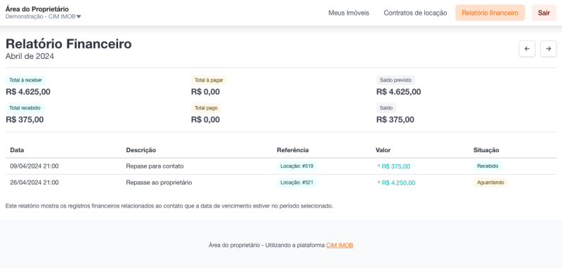 O acesso à área do proprietário será através do seguinte link: proprietarios.imob.cim.br