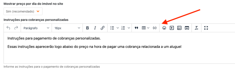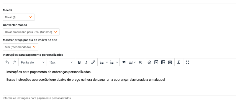 Como você pode usar outros aplicativos para fazer a cobrança, pode ser necessário passar algumas instruções para seu cliente. Para fazer isto, disponibilizamos um campo de texto editável onde você poderá descrever os passos que o cliente deve fazer para efetuar o pagamento.