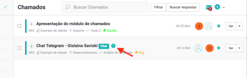 Na lista adicionado o número de mensagens pendentes do chamado: