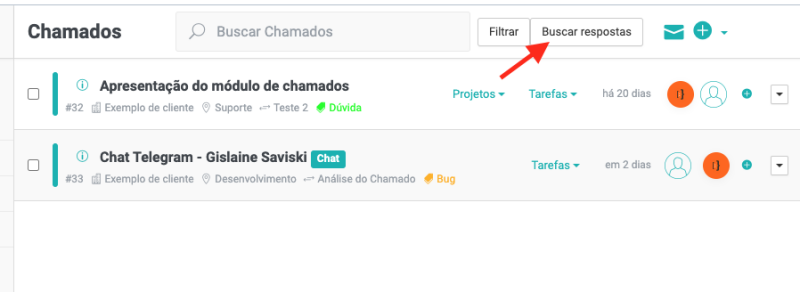 - Por exemplo, se eu informar o termo: observações chamado serão exibidos as respostas que possuem essas duas palavras na mensagem.