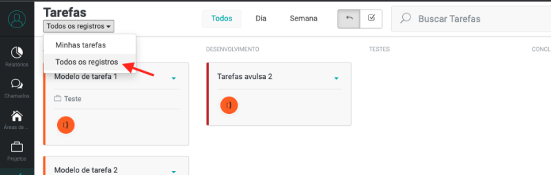 As tarefas que o usuário está relacionado e que não pertencem ao setor, não serão exibidas em "Todos os registros", apenas tarefas do setor que ele pertence.