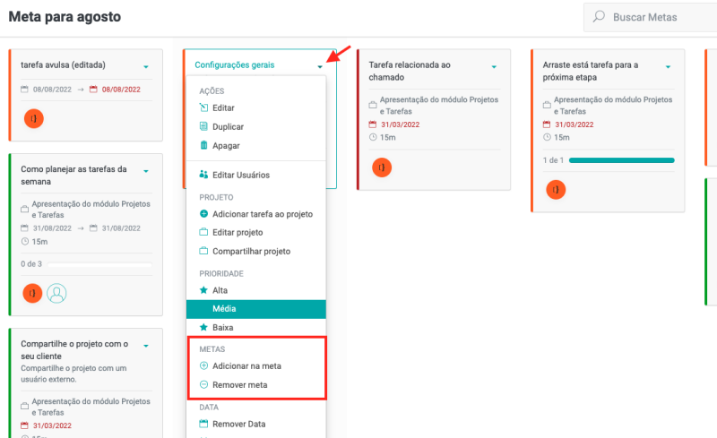 Adicionado atalho para remover a tarefa da meta. Agora ao clicar em ações, adicionada a opção Remover da meta, dessa forma a tarefa será removida da meta atual.