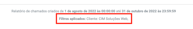 Quando o relatório é impresso / salvo em pdf, os filtros aplicados serão exibidos no final do documento: